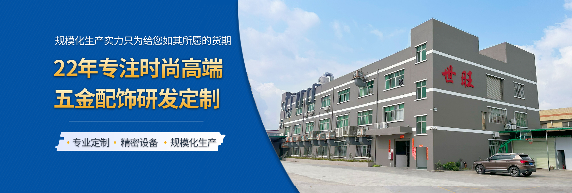 世旺五金是一家專業(yè)從事手袋箱包五金配飾定制生產(chǎn)的工廠,始創(chuàng)于2004年,至今19年五金配飾定制經(jīng)驗(yàn),是集研發(fā)、設(shè)計(jì)、制造、電鍍、銷售于一身的企業(yè),擁有14000多平的生產(chǎn)基地,全自動(dòng)化生產(chǎn)能力,自有模具制造車間和電鍍工廠,日產(chǎn)能20多萬(wàn)件,還有強(qiáng)大的技術(shù)團(tuán)隊(duì)和高效的銷售網(wǎng)絡(luò)。我們以市場(chǎng)需求為導(dǎo)向,不斷探索和創(chuàng)新,在產(chǎn)品品質(zhì)和性能上達(dá)到領(lǐng)先水平。 我們的產(chǎn)品包括各類五金制品,如高端皮具手袋、消費(fèi)電子、禮品/工藝品包裝、寵物穿戴、汽車裝飾等領(lǐng)域五金配飾,應(yīng)用廣泛,覆蓋行業(yè)多。 以客戶需求為中心,為客戶提供全方位的一站式服務(wù),包括售前咨詢,生產(chǎn)跟進(jìn),售后服務(wù)等等。提供保姆式顧問(wèn)式服務(wù),與品牌商、手袋廠等共同打造好產(chǎn)品,好IP。